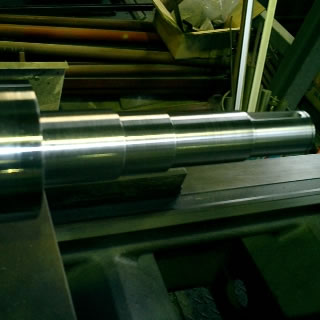インキ元ローラーは、掃除後、旋盤で磨き(左)、ピカピカに仕上げます(右)。