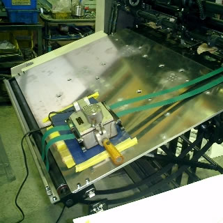 フィーダーボードを給紙部に取り付け(左)、フィーダーベルトを取り付けます(右)。
