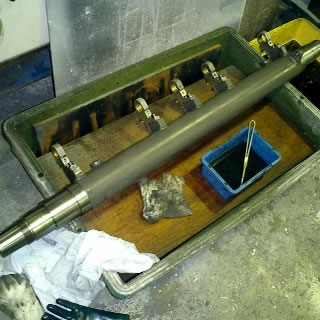 スインググリッパーは、分解、掃除し、軸受け、軸、ニードルベアリング等を交換します。